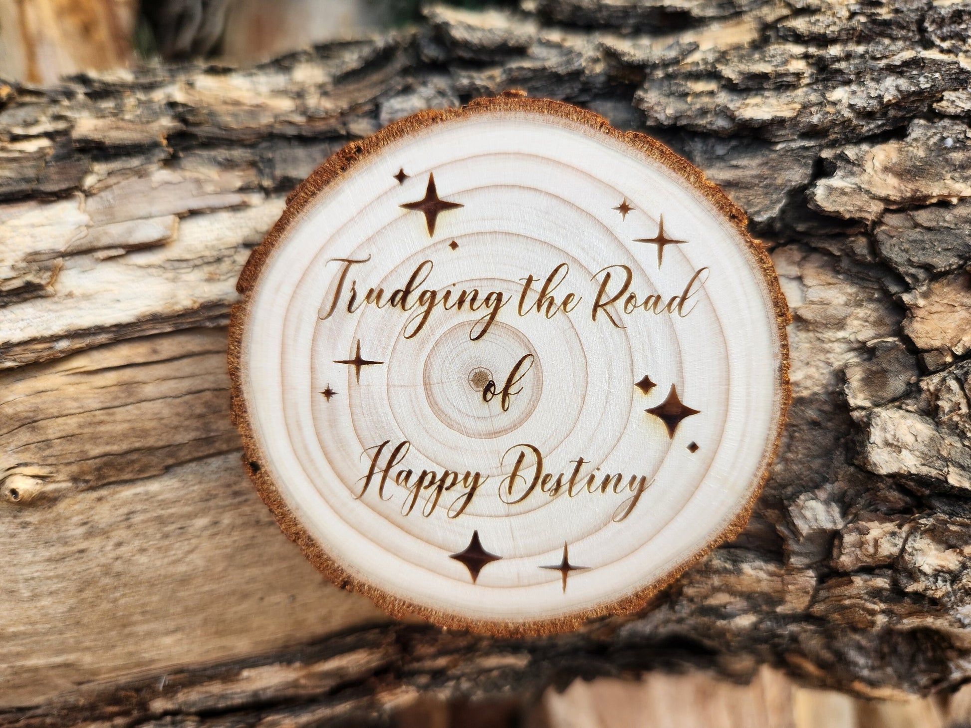 Keep your medallion dry and store it in a cool place to prevent natural cracking. The wood will develop character over time, making it even more personal and meaningful. Avoid prolonged exposure to moisture or direct sunlight.