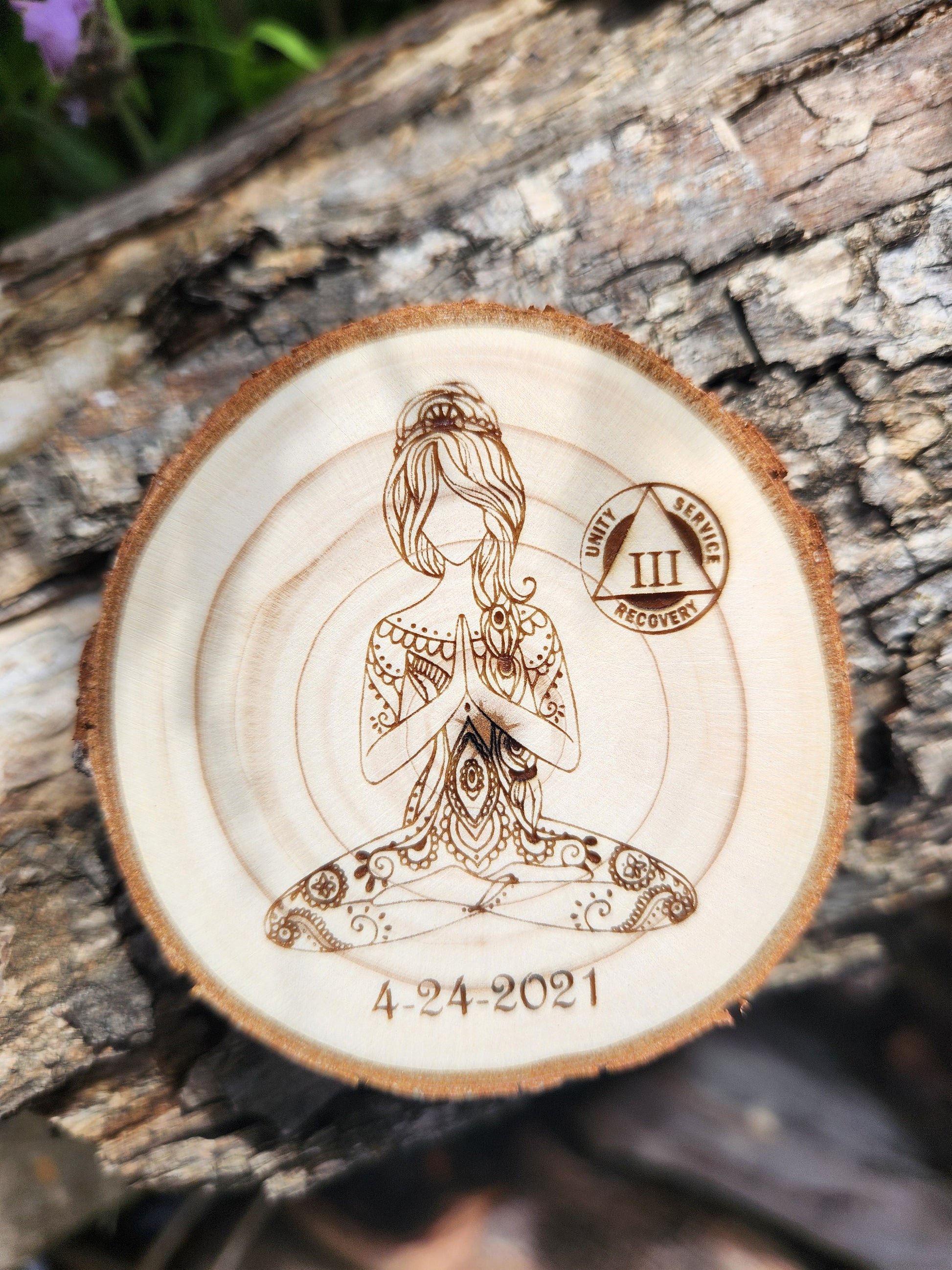 An AA medallion (also called a sobriety chip or token) is a tangible symbol given to mark milestones in addiction recovery. Our wooden medallions are personalized with your sobriety date and recovery program, making them a meaningful keepsake of your journey.